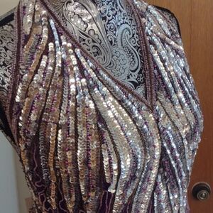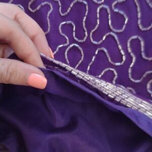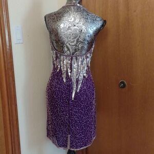 Carina Purple Silk beaded halter minidress halter top sparkle purple silver S