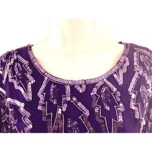 Carina Vintage Sequin Embellished Asymmetrical Silk Dress Size L Formal Event