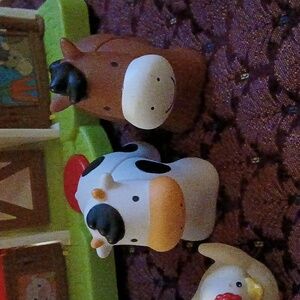 Pre-owned in good condition. Chicken is Fisher-Price. (Other farm animals are not Fisher-Price). Batteries included. Sold as shown.