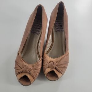 Stylish Carinii peep toe heels. Elegant knot detail. Perfect for any occasion. Size 8