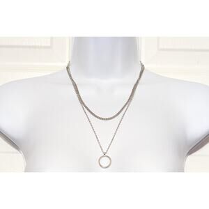 Design: Two-layer necklace with upper curb-style chain and lower cable chain featuring an open circle pendant