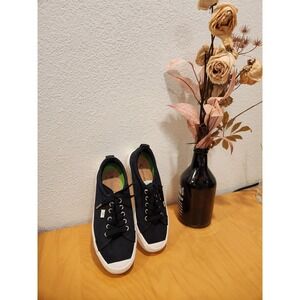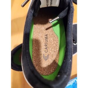 Step into eco-conscious comfort with these Cariuma black canvas low-top sneakers, size US Women's 7 / Men's 5.5 (EU 38). Featuring a natural cork insole, white rubber sole, and green detailing, these are designed for everyday versatility and all-day wear. Sustainably made with thoughtful construction and minimal branding. Gently used with clean soles and no major flaws.
