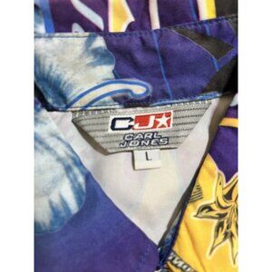 Carl Jones Button Up Shirt Mens Large Blue All Over Hawaiian Short Sleeve.