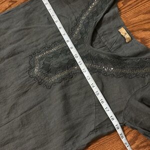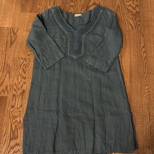 Carla Conti 100% linen mini dress 3/4 sleeve embroidered beaded front ITALY sz S