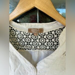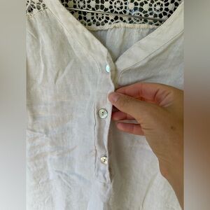 Carla Conti Medium 100% Linen Sleeveless Tank Crochet Detail Cream beige