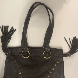 Carla Mancini Edgy Black and Gold leather Tote with Studded & fringe Details