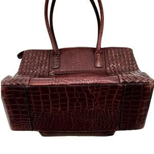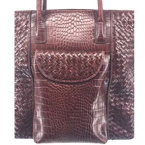 Carla Mancini Woven Croc Leather Tote Bag Brown 12" Vintage Italian Handbag