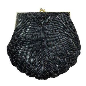 Carli Marchi Black Beaded Clamshell Clutch Handbag Evening Bag Vintage