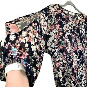 Carla Mink Made in Portland, OR Floral Semi Sheer Split Sleeve Women's Blouse.
