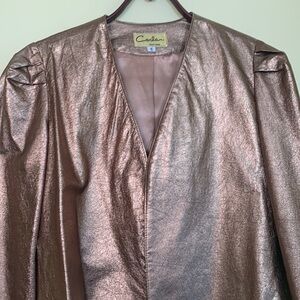 Carla. New York | Vintage Rose Gold Leather Open Front Lined Lightweight Jacket in a vintage size 6