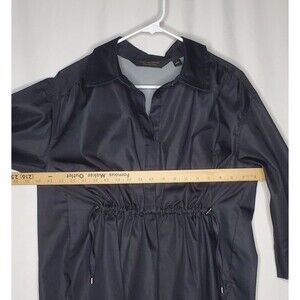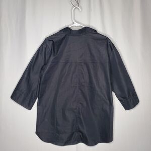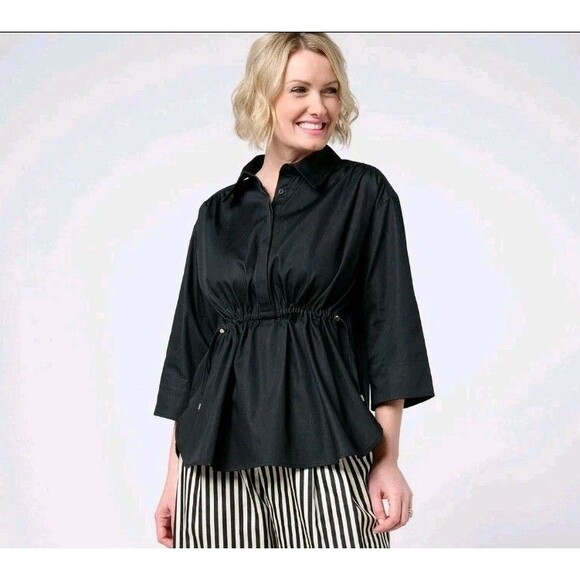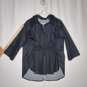 Carla Rockmore Collections Top Women Small Black Chambray Stretch Collar Cinched Drawstring Waist 3/4 Sleeve V-Neck