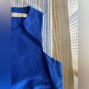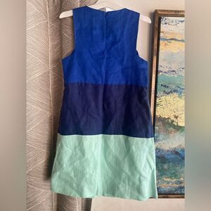 Carleen Tritone Colorblock Linen Shift Mini Dress Sz XS Petite Pocket Front