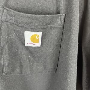 The product is a Carhartt men's XL short sleeve t-shirt with a relaxed fit and a vintage look. It features a black color with a design on the front, giving it a unique and stylish appeal. The t-shirt also includes pockets, adding functionality to its casual and relaxed style. Perfect for everyday wear, this t-shirt combines comfort and style in one versatile piece of clothing.