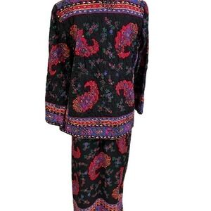 Carlisle 2 PC Silk Wool Black Floral skirt & Jacket Set Suit NWOT Sz 12