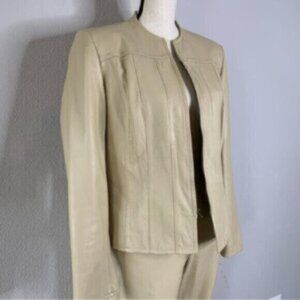 Carlisle 90s Vintage Genuine Leather Two Piece High Waist Straight Leg Pants Suit Set