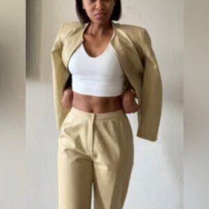 Carlisle 90s Vintage Genuine Leather Two Piece Pants Suit Set