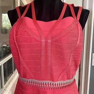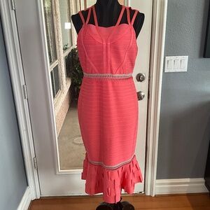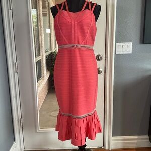 Carlisle Bandage Cutout Midi Dress Wedding Guest Resortwear Peachy Pink Tan L