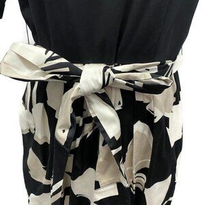 Per Se by Carlisle black w/tan abstract pattern short sleeve dress w/sash retail $478, Size 12