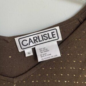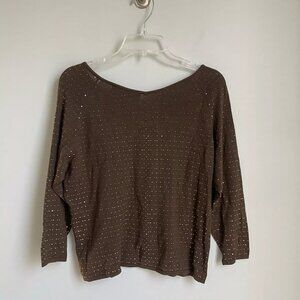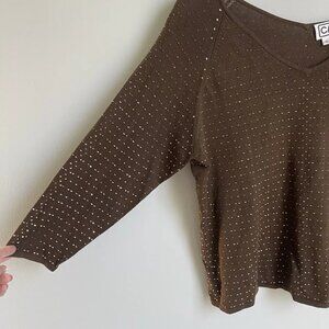 Carlisle Brown Silk Blend Sequin Embellished V Neck Sweater 3/4 Sleeve