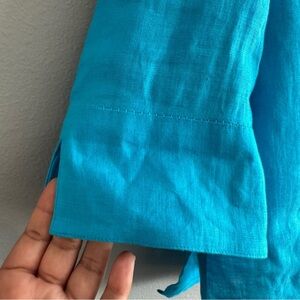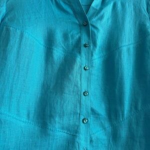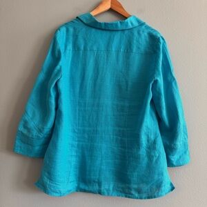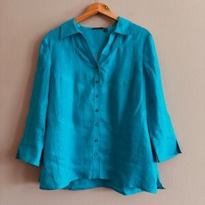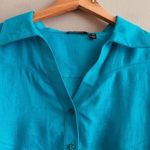 Carlisle Button Down Shirt Linen 3/4 Sleeve V Neck Size 14