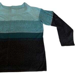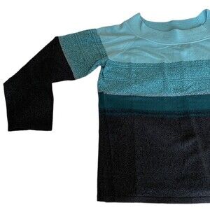 Aquamarine, Teal, Graphite and Black silk knit with ombré stripes across chest & upper sleeve.