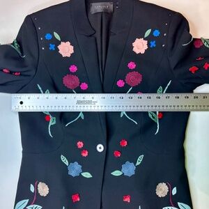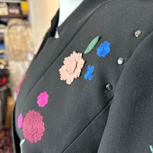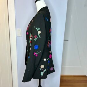 Carlisle Collection Black fitted blazer w/colorful appliqué flowers. Size 8 EUC