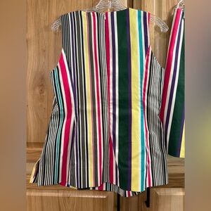 Vibrant and stylish, this colorful striped skirt set is perfect for making a statement. The bold design features a mix of beautiful stripes, offering a playful yet chic look. Ideal for any occasion, this skirt adds a pop of color to your wardrobe. Office wear, vintage look, business, unique, party, event. Excellent condition.