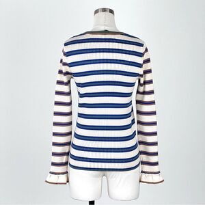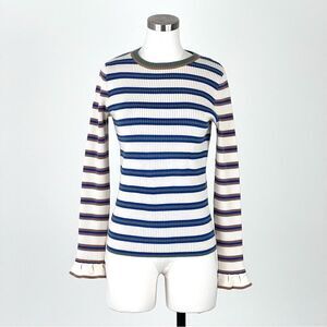 • Half-Cardigan Rib Knit With Multi-Width Stripes And A Pleated Ruffle Cuffs