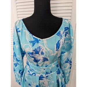 Perfect for any occasion, whether it's a wedding, party, or even just for travel, this blouse is sure to make a statement. The blue and white floral pattern is both colorful and summery, while the lightweight fabric makes it comfortable to wear in warmer weather. This blouse is a size 12 and is recommended for dry clean only.