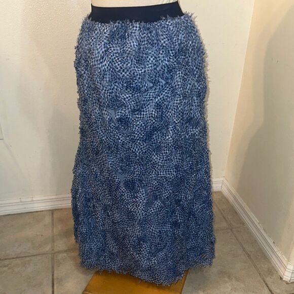 This elegant blue/white checkerboard textured skirt is perfect for any occasion. Its unique design adds a touch of sophistication to your wardrobe. Perfect line new condition…so cute!