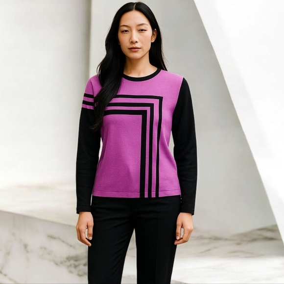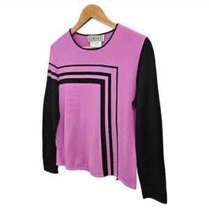 Carlisle Colorblock Ponte Knit Sweater Sz Large Womens Pink Black Stretch Office