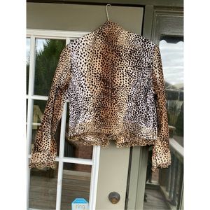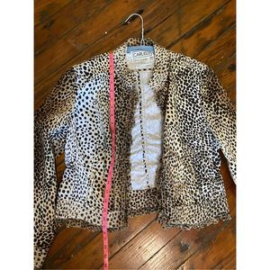 Carlisle Leopard Silk Blend Jacket, Fringe Cream, Black, Brown Blazer, Size 16