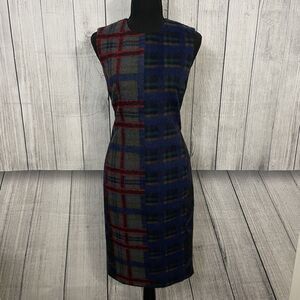 Carlisle New York Women's Size 2 Multicolor Plaid Tweed Wool Blend Sheath Dress