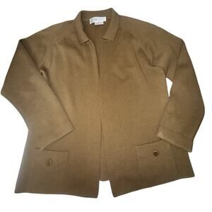 Carlisle Open Cardigan 100% Merino Wool Toffee Brown Pockets, Sz XL