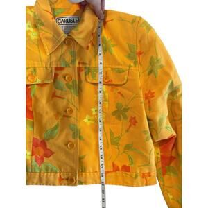 Carlisle Orange Yellow Floral Cropped Jacket Silk Cotton Blend Size 10