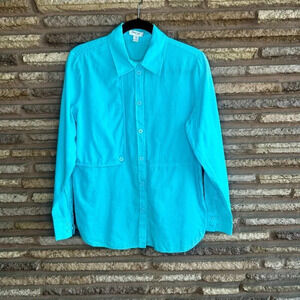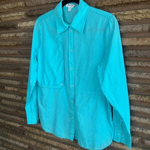 Carlisle Per Se Turquoise 100% Cotton Tunic Blouse Shirt Size 10