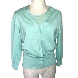 Carlisle Silk Blend Twin Set Womens Size Medium Vintage 90s Nylon Spandex Green