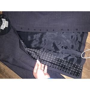 This blazer is lined with silk and insulated with polyester, making it lightweight and suitable for all seasons. The size L fits regular size types and the black color complements any outfit. The blazer is perfect for those who love designer, Italian, or preppy styles and is insulated with polyester. This blazer is perfect for weddings, parties, or cocktail events. Retails for upwards of 600$ real Pearl buttons