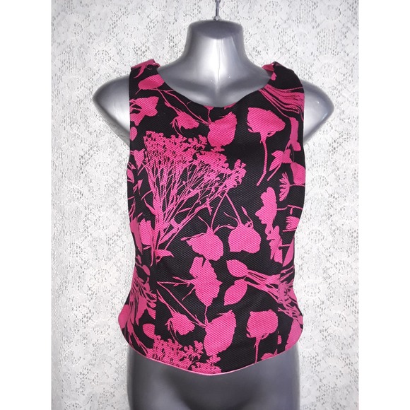 Carlisle Sleeveless Pink & Black Floral Print Back V-Neck Top 10