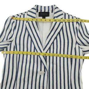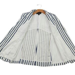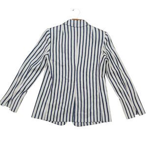 Carlisle Sport Blazer Jacket Womens 6 White Navy Striped Linen Blend Two Button