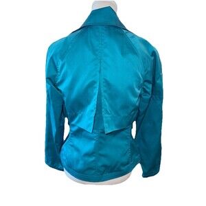 Carlisle Teal Blue Satin Utility Jacket Size 6 US UK 8 Structured Pockets Zip