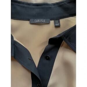 Carlisle Toffee and Black 100% Silk Button-Up Semi-Sheer Blouse Size 8