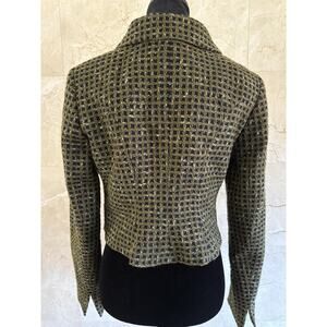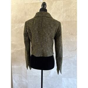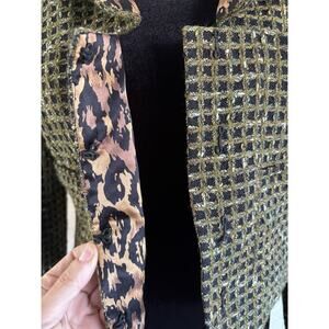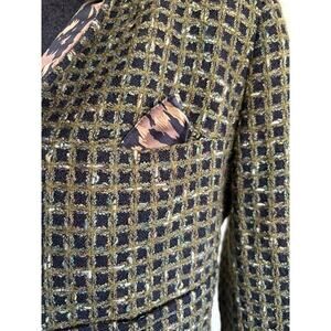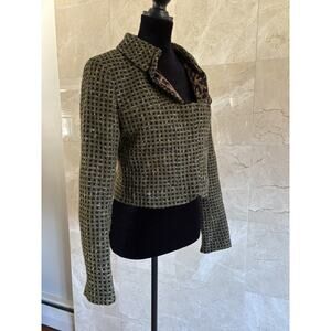Carlisle Tweed Cropped Blazer 6 Green Black Leopard Statement Jacket Office Chic