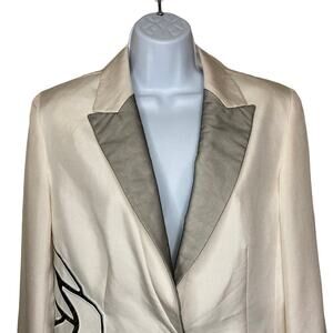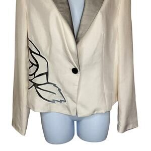 Carlisle Vintage Blazer Jacket With Floral Mesh Inset Collar 100% Silk Size 8