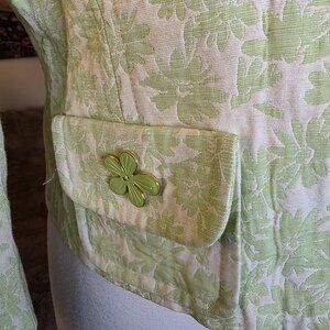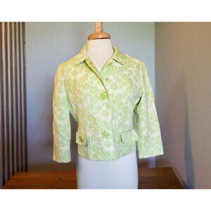 Carlisle Vintage Green Floral Jacquard Jacket Blazer Size 8 Button Front
