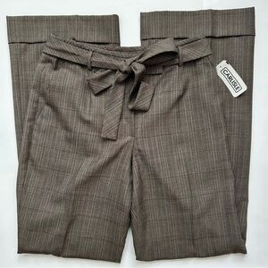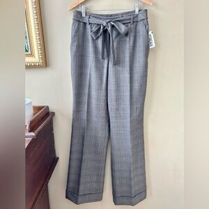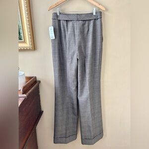 Carlisle Vintage Wide Leg Brown Gray Plaid Belted Wool Trousers Cuff New NWT