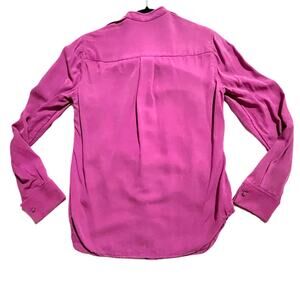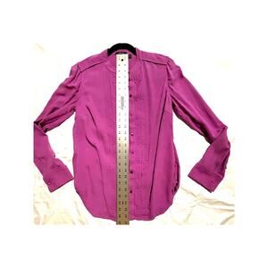Keywords: Carlisle silk blouse, magenta button top, silver stud detail shirt, women’s size 6, career silk blouse, holiday party top, luxury silk shirt, EUC designer blouse, pleated silk top, upscale workwear, capsule wardrobe blouse, thick silk button-up.
