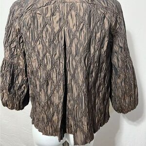 Carlisle Size 6 Women Brown Textured Cropped Windbreaker Jacket Zipper Snap Buttons.