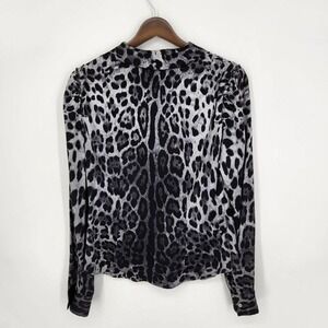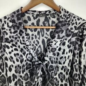 Carlisle Womens Button Blouse Bow Neck Silk Stretch Snow Leopard Print Size 2