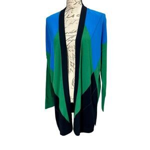 Carlisle Women's Knit Open Cardigan Colorblock Argyle Large Green Blue Black